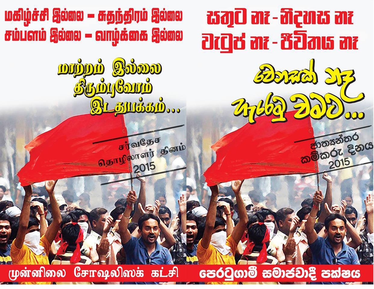 வருடம் பூராவும் நாறிக்கிடக்கும் இந்த முறைமைக்கு சொந்தக்காரர்களான அனைவரும், இந்த முறைமையை தொடர்ந்தும் முன்னெடுப்பதற்காக, இடதுசாரிகளெனத் தம்மைக் கூறிக்கொண்டு வெள்ளயடிப்பவர்கள் தான், மே தின மேடைகளில் மாத்திரம் உழைக்கும் மக்கள் குறித்து முதலைக் கண்ணீர் வடிப்பார்கள். அதன் பிறகு அடுத்த நாளிலிருந்து எமது வாழ்வை சீரழிக்கும் இந்த முறைமையை பாதுகாக்க நடவடிக்கை எடுப்பார்கள்.