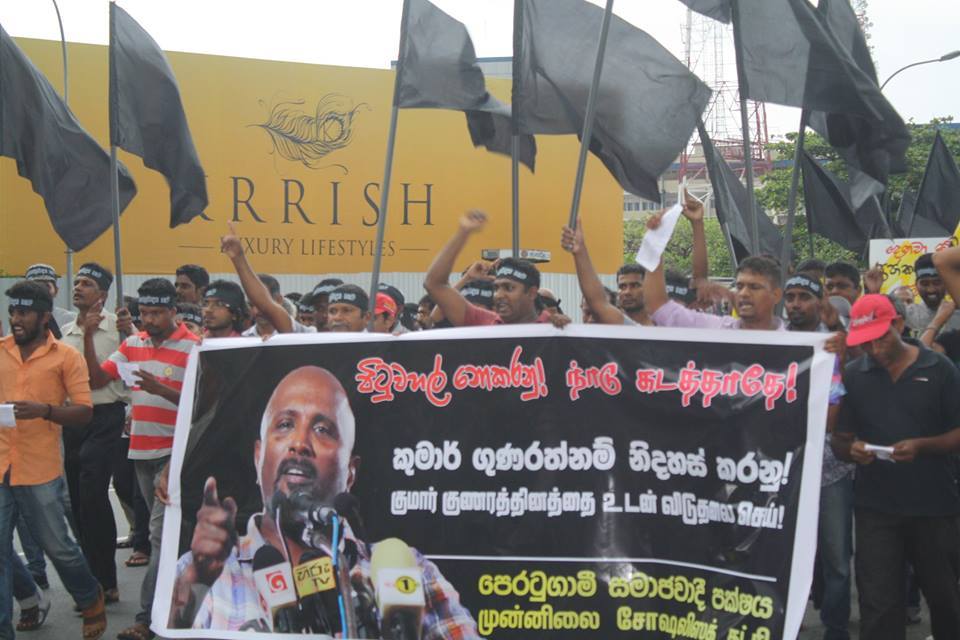 முன்னிலை சோசலிச கட்சியின் அரசியல் சபை உறுப்பினர் குமார் கைது செய்யப்பட்டு கடந்த 5ம் திகதியுடன் இரு மாதங்கள் நிறைவடைந்து விட்டன. மைத்திரி – ரணில் கூட்டரசாங்கம் குமாரின் குடியியல் உரிமை குறித்தான தனது நிலைப்பாட்டினை அறிவிக்காது தொடர்ந்து மௌனம் காக்கின்றது. ஜனாதிபதி தேர்தல் காலத்தில் கடந்த ஆட்சியில் அரசியல் காரணங்களால் உயிராபத்தை எதிர்நோக்கி புலம்பெயர்ந்தவர்களை திரும்ப வருமாறு மைத்திரி – ரணில் கூட்டு பகிரங்க அழைப்பினை விடுத்ததன் பேரிலேயே குமார் குணரத்தினம் அவர்கள் கடந்த ஜனாதிபதி தேர்தல் காலத்தில் நாடு திரும்பி இருந்தார்.