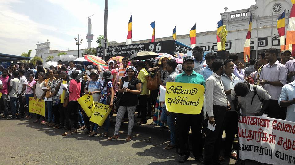 இன்று கொழும்பில் ஒன்றிணைந்த வேலையற்ற பட்டதாரிகள் அமைப்பினால் ஆர்ப்பாட்டம் மற்றும் பேரணிப் போராட்டங்கள் முன்னெடுக்கப்பட்டது. வருடாந்தம் வேலை வழங்கும் தேசிய கொள்கை ஒன்றினை தயாரிக்கு மாறும், அனைத்து பட்டதாரிகளுக்கும் முறையாக வேலை வழங்குமாறும், ஓய்வூதிய பங்களிப்பை ஏமாற்ற வேண்டாம் என பல கோரிக்கைகளை முன்வைத்து இந்த போராட்டத்தினை ஏற்பாடு செய்திருந்தனர். நாட்டின் அனைத்து பகுதிகளில் இருந்து வருகை தந்த வேலையற்ற பட்டதாரிகள் இதில் கலந்து கொண்டிருந்தனர்.