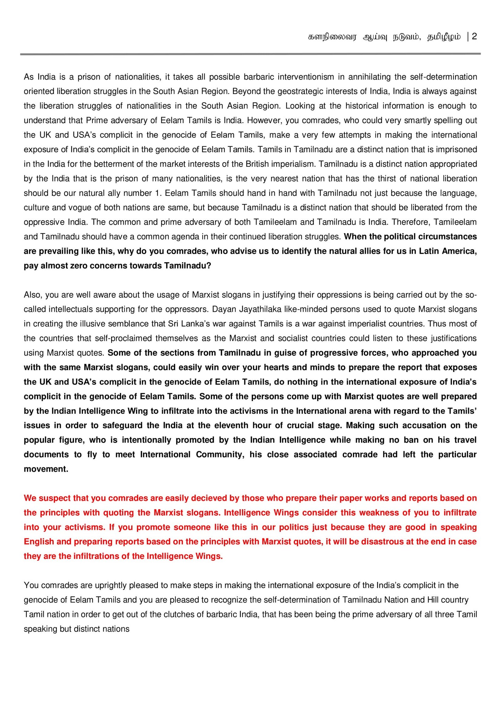 ஒடுக்கப்பட்டவர்களின் குரல்களுக்காய் நாம் குரல் கொடுக்க வேண்டுமெனின், எம்மிடமிருக்கும் பறையை அந்த சமூகத்தினரோடு இணைந்து வெளிக்கொணர்வதாகும். அதை விடுத்து ,இன்னொரு பிரதேசத்தின் மரபினை எம் மரபு எனச் சொல்லி, இங்கே இருக்கும் மரபினை பொதுவான மரபிற்கு மடைமாற்றம் செய்வது அபத்தமானது. கொள்கை வகுப்புக்களும் சமூகக் கோட்பாடுகளும் குறிப்பிட்ட சமூகத்தின் ஆழத்திலிருந்து தோன்றுபவை. அவை அந்த சமூகத்திற்கே பிரதியிடப்பட முடியும்.